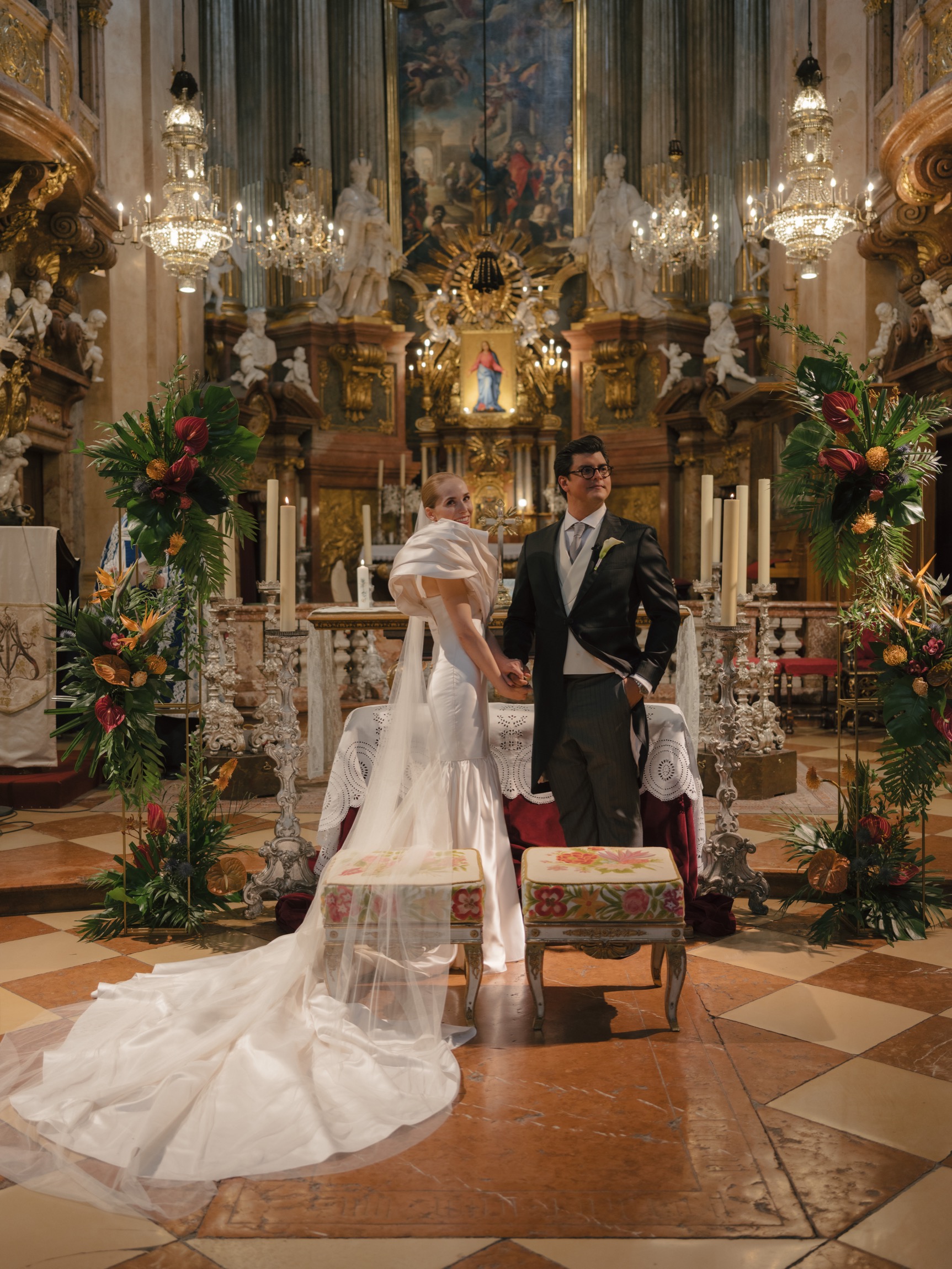 Anna and Patrick created a very special weekend for their international guests in the heart of Vienna. Starting with a traditional get-together on Friday followed by an extravagant wedding on Saturday with the topic of “Birds of paradise”. The guests were surprised with live performances from Mozart’s “Magic Flute” and a Taco Room for the hungry party crowd.