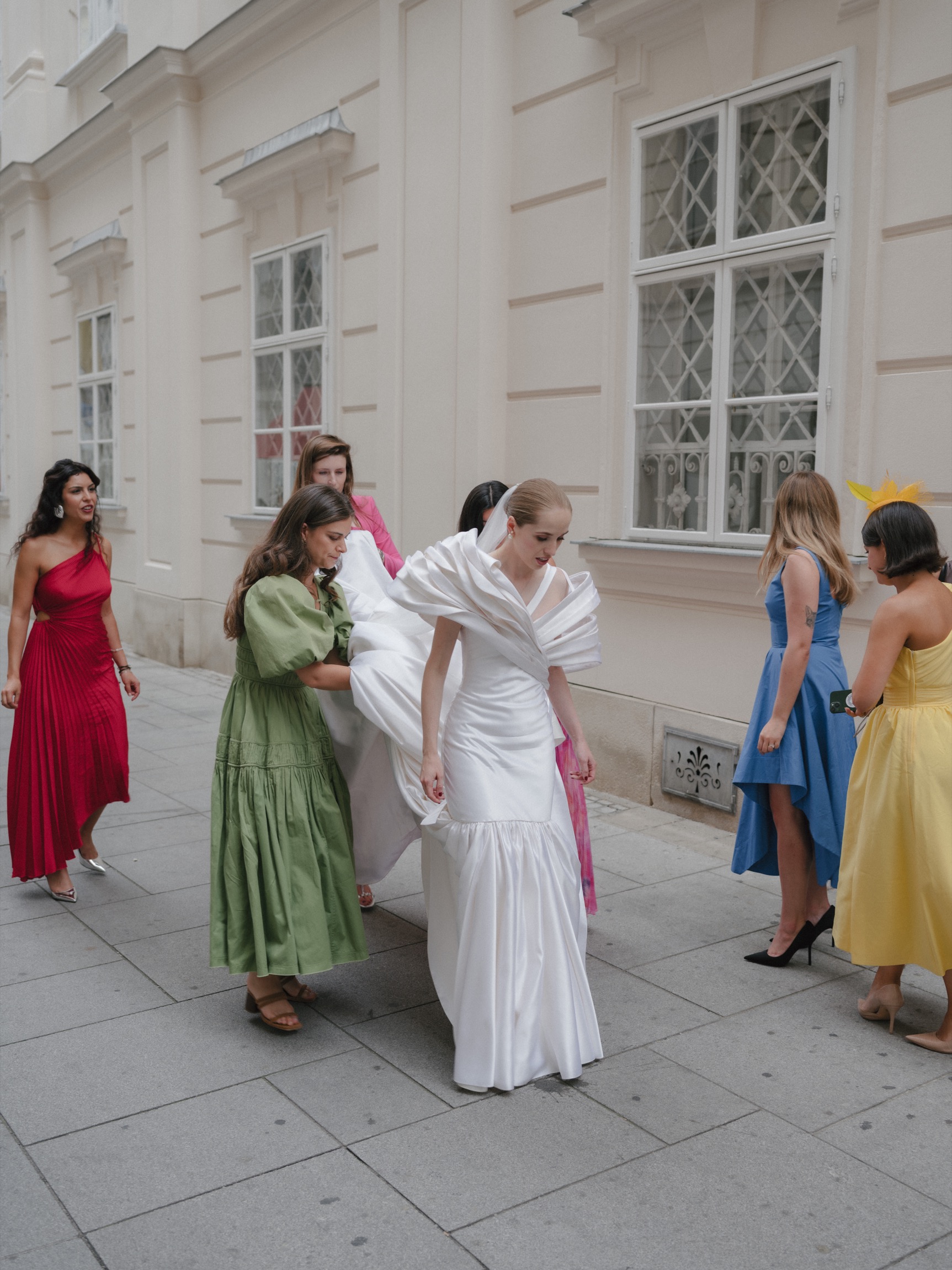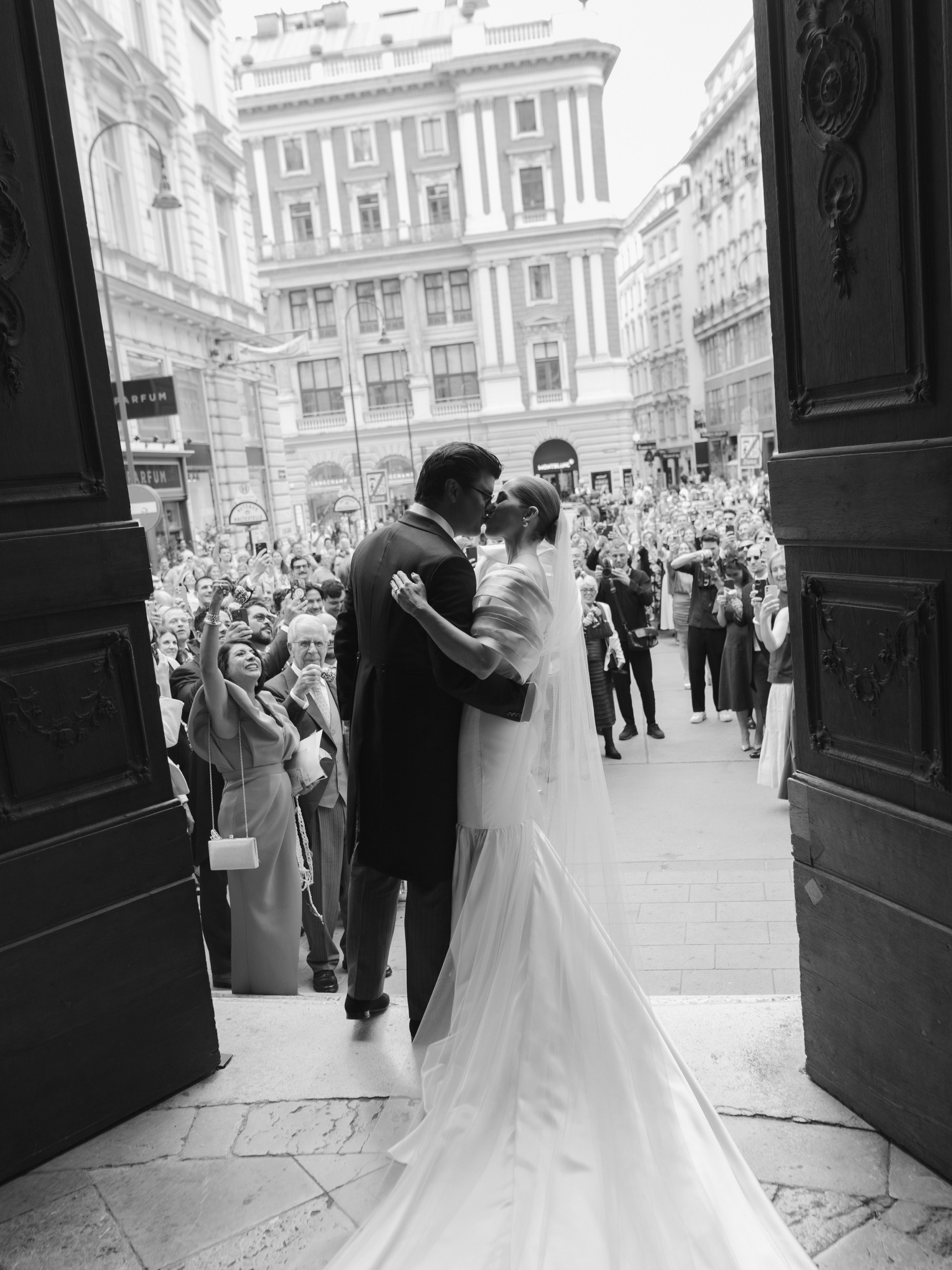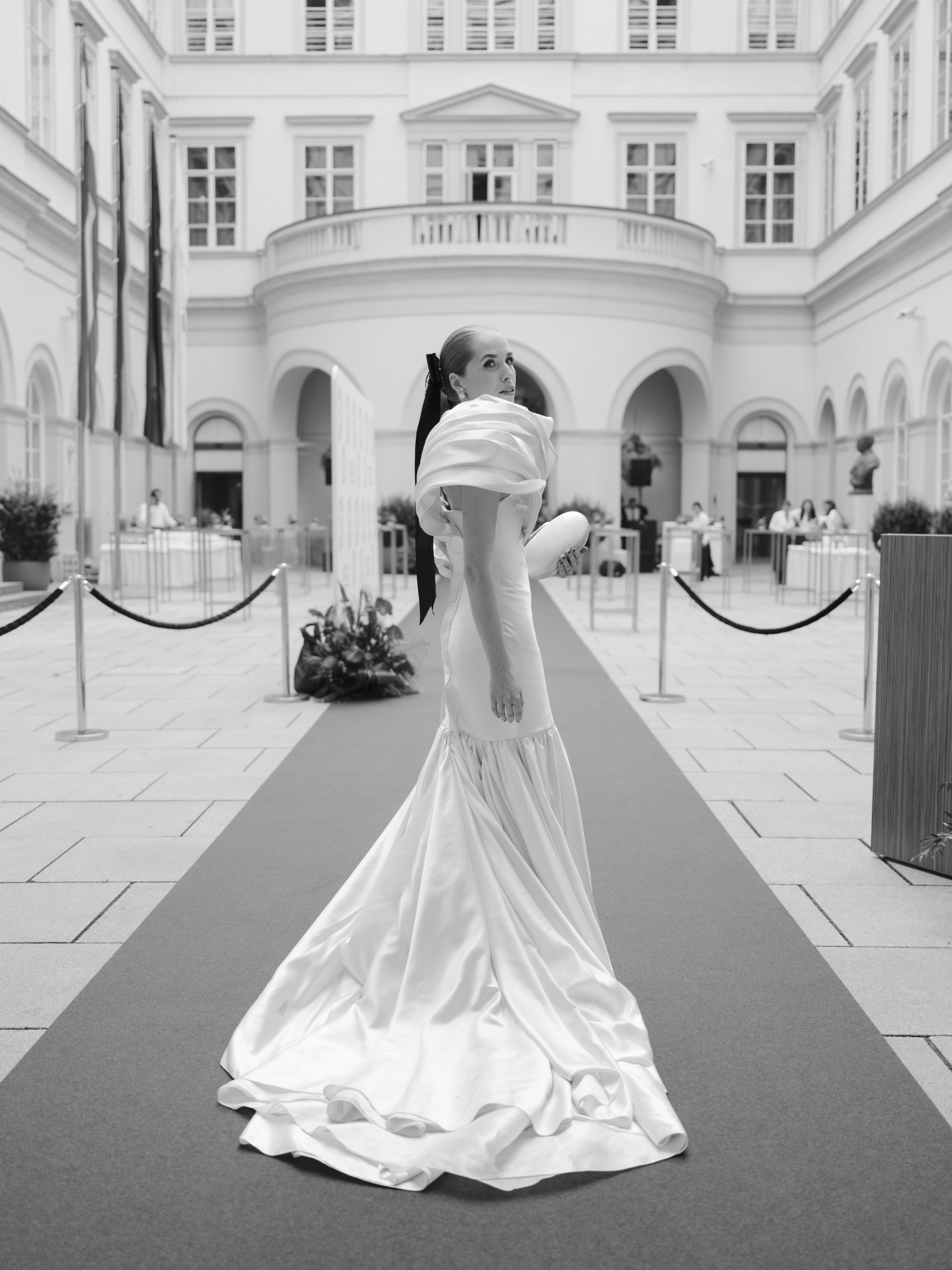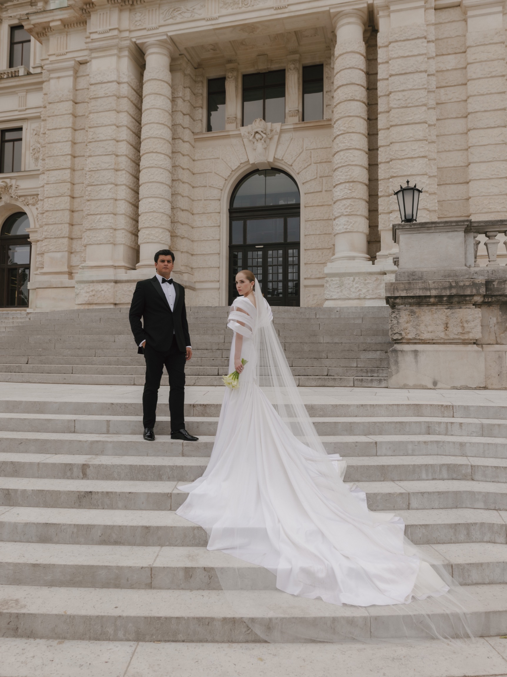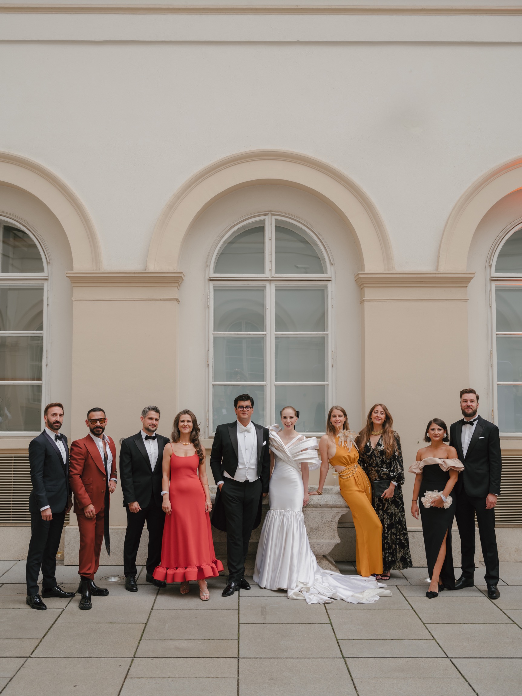 The day began in Vienna’s iconic first district with a beautiful ceremony. As Anna appeared in her bespoke wedding gown by designer Katharina Reuschel, she literally stopped the city in its tracks. The gown, a work of art requiring two people to manage throughout the day, left the onlookers outside the venue in awe. After the ceremony, the couple and their guests made their way to a nearby Italian restaurant for a relaxed reception drink and delicious pizza bites. Walking through the bustling streets of Vienna with Anna’s breathtaking gown and a lively wedding party was a spectacle worthy of a red carpet.