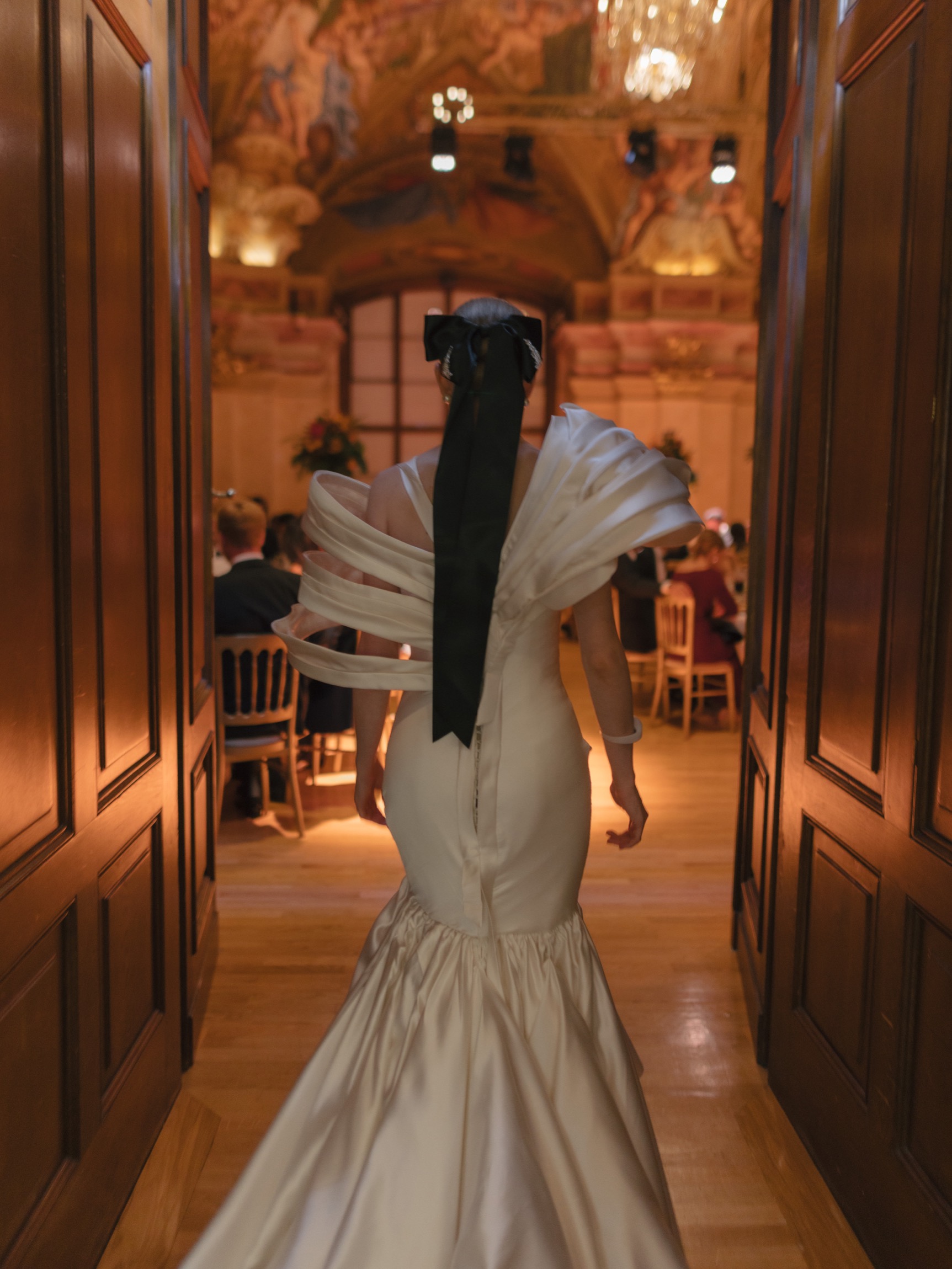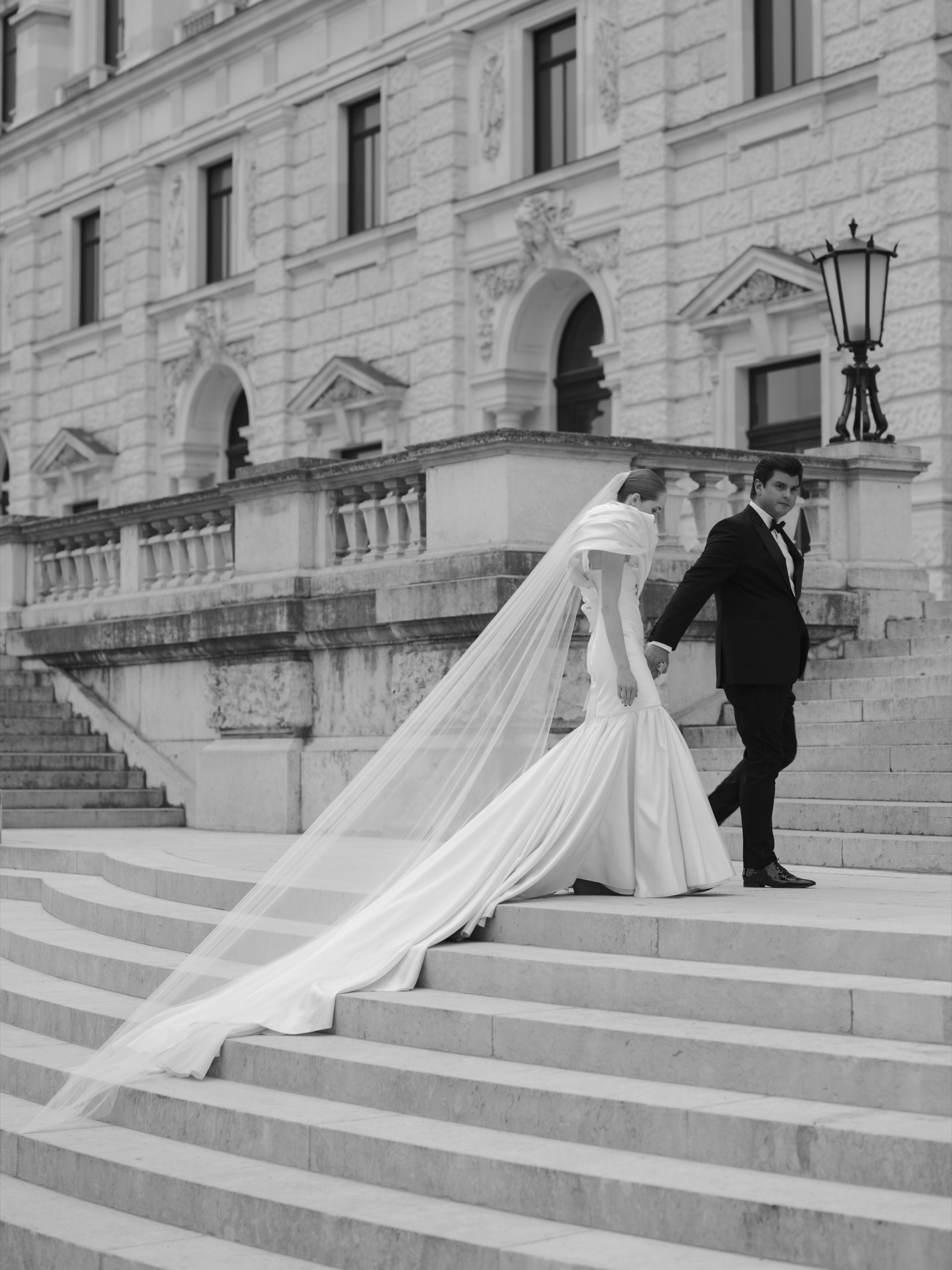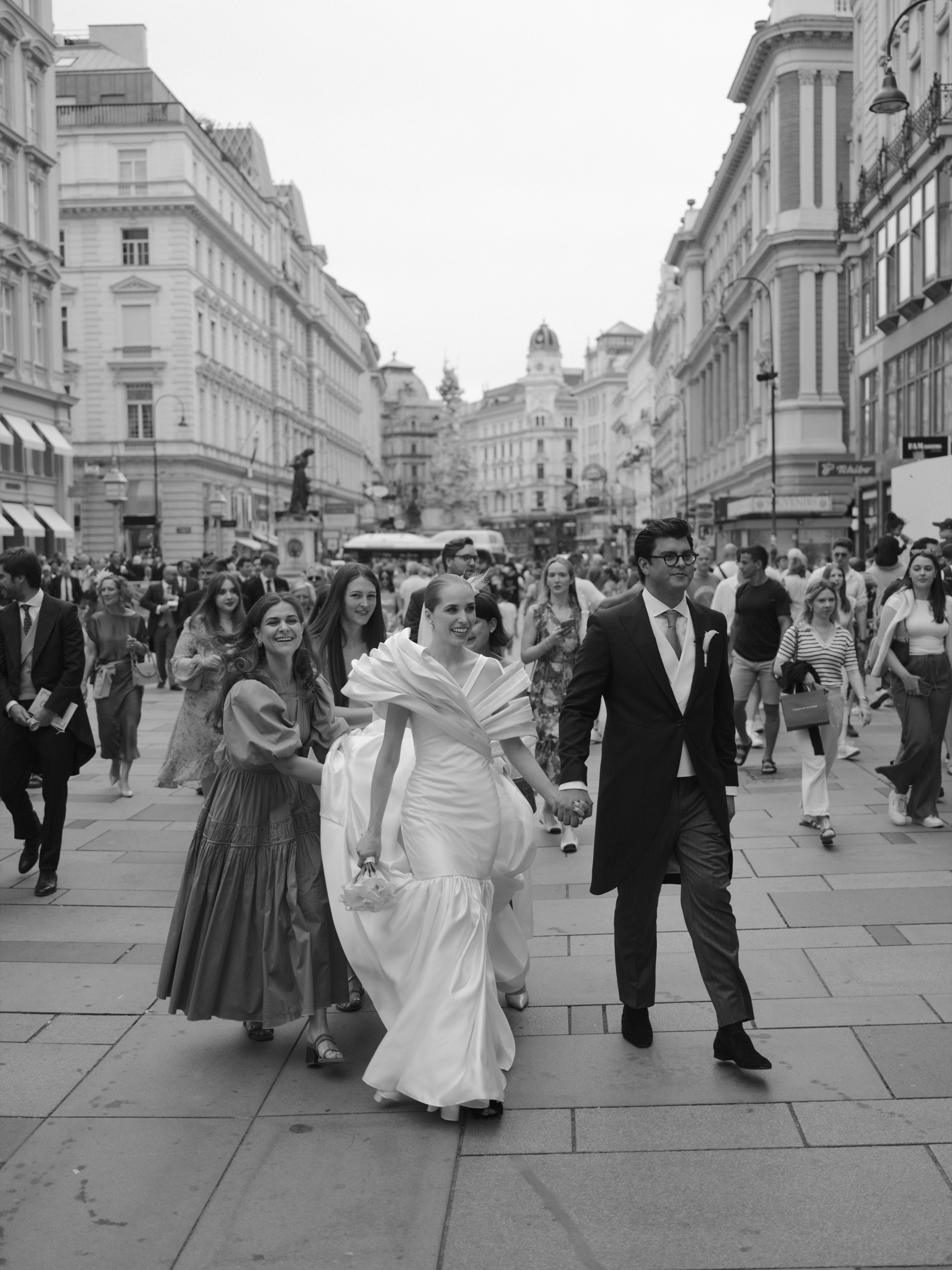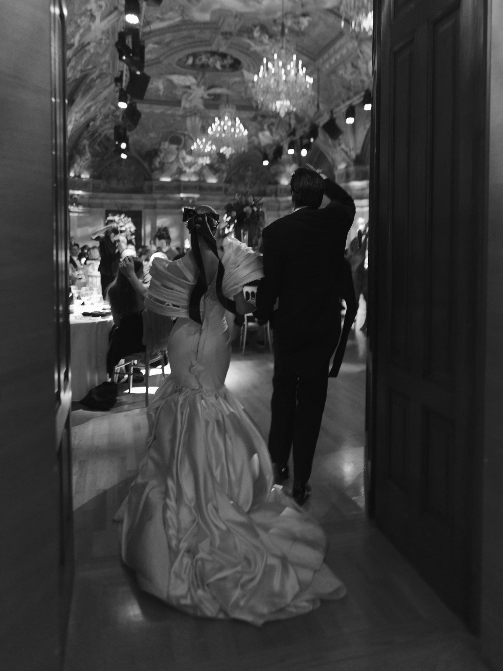 The day began in Vienna’s iconic first district with a beautiful ceremony. As Anna appeared in her bespoke wedding gown by designer Katharina Reuschel, she literally stopped the city in its tracks. The gown, a work of art requiring two people to manage throughout the day, left the onlookers outside the venue in awe. After the ceremony, the couple and their guests made their way to a nearby Italian restaurant for a relaxed reception drink and delicious pizza bites. Walking through the bustling streets of Vienna with Anna’s breathtaking gown and a lively wedding party was a spectacle worthy of a red carpet.