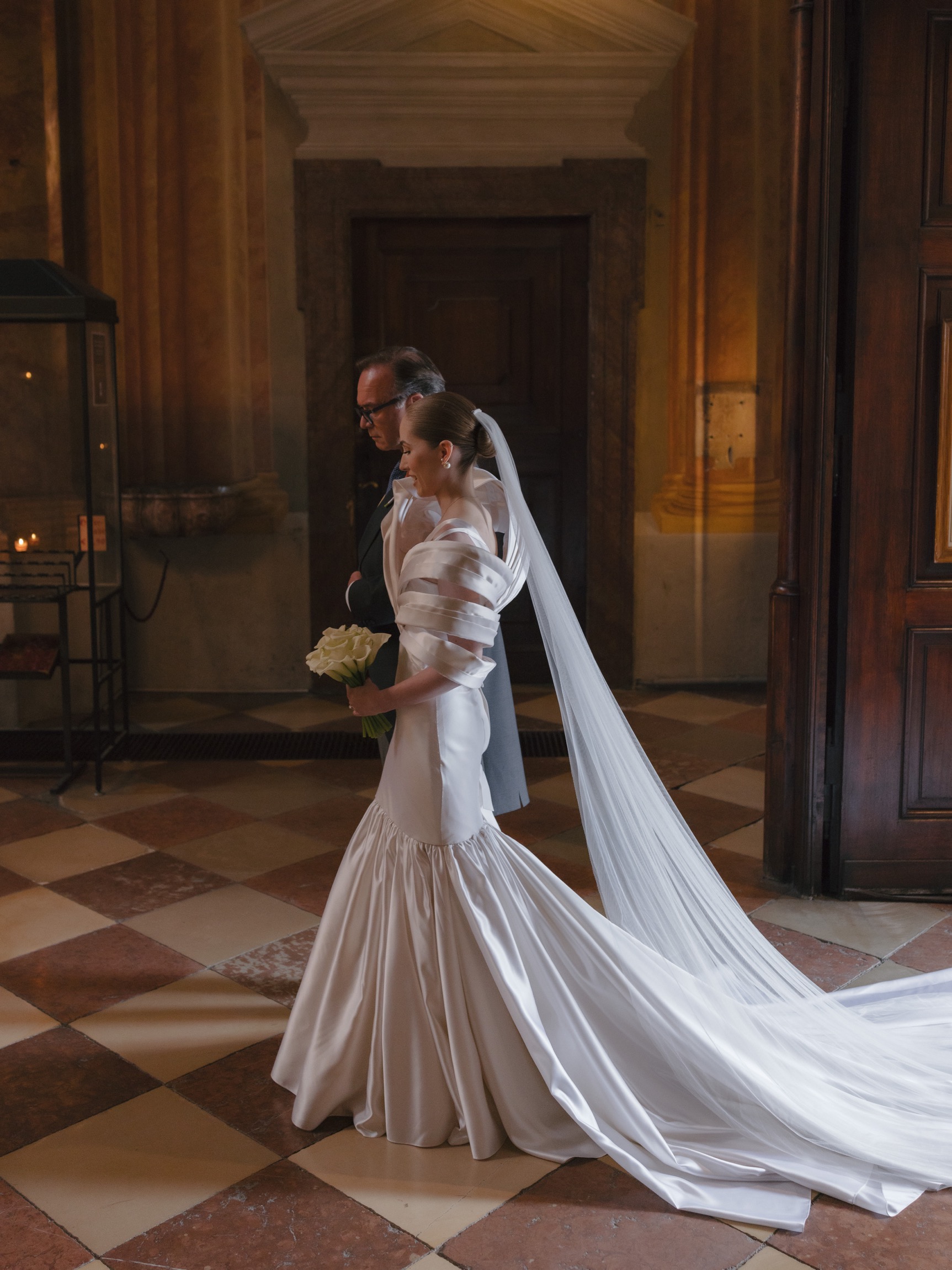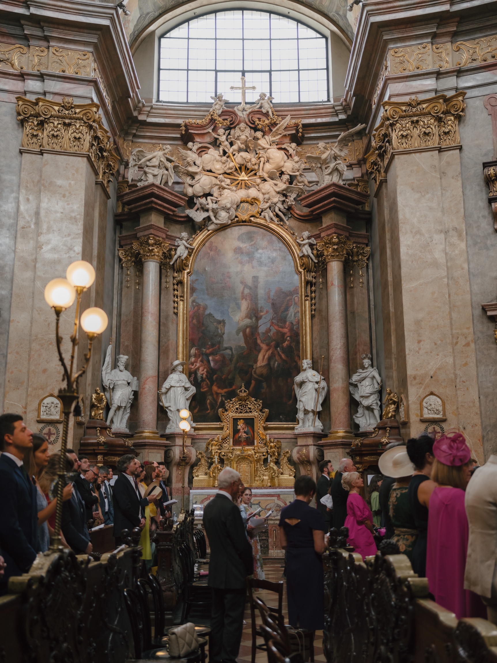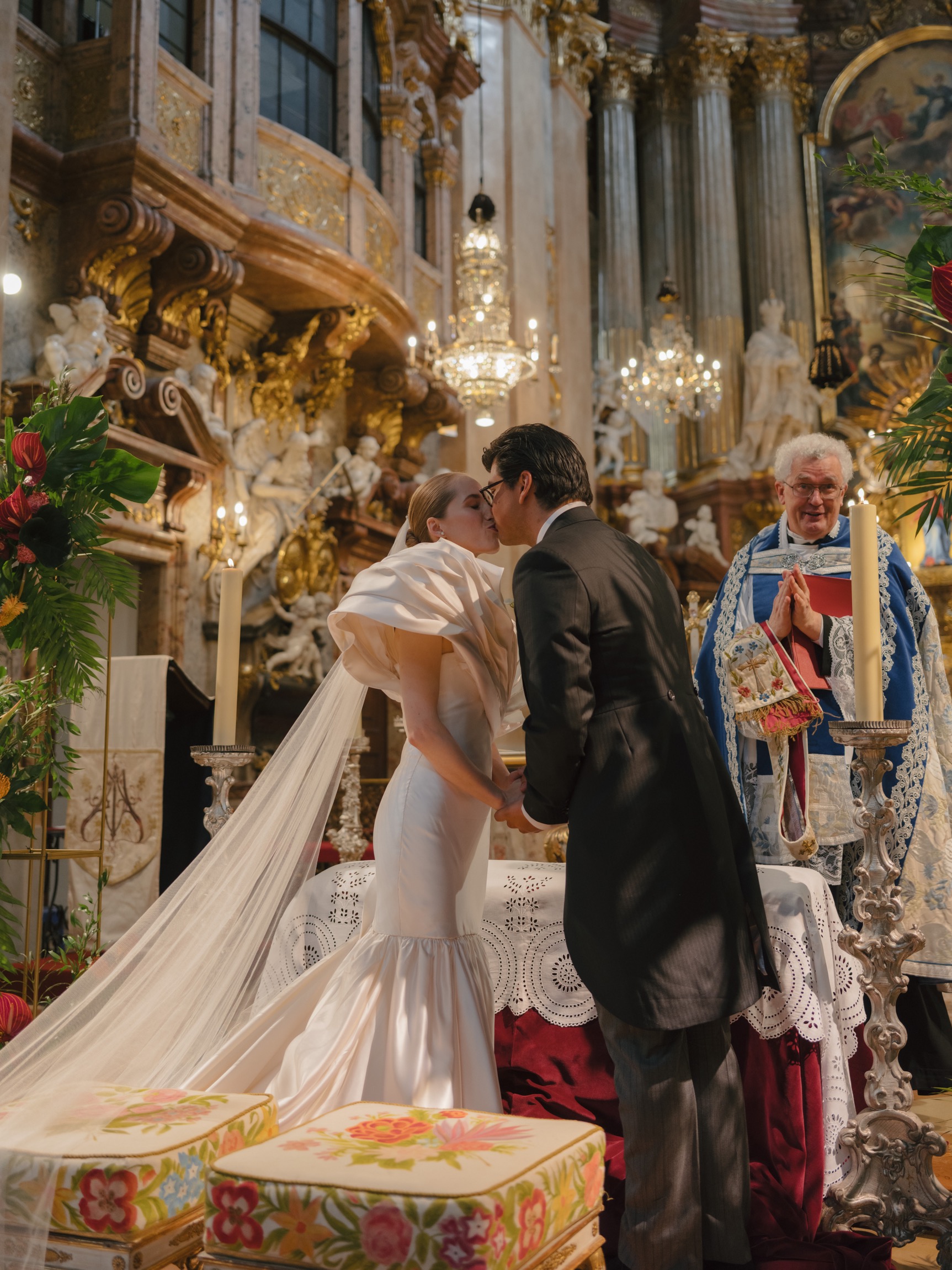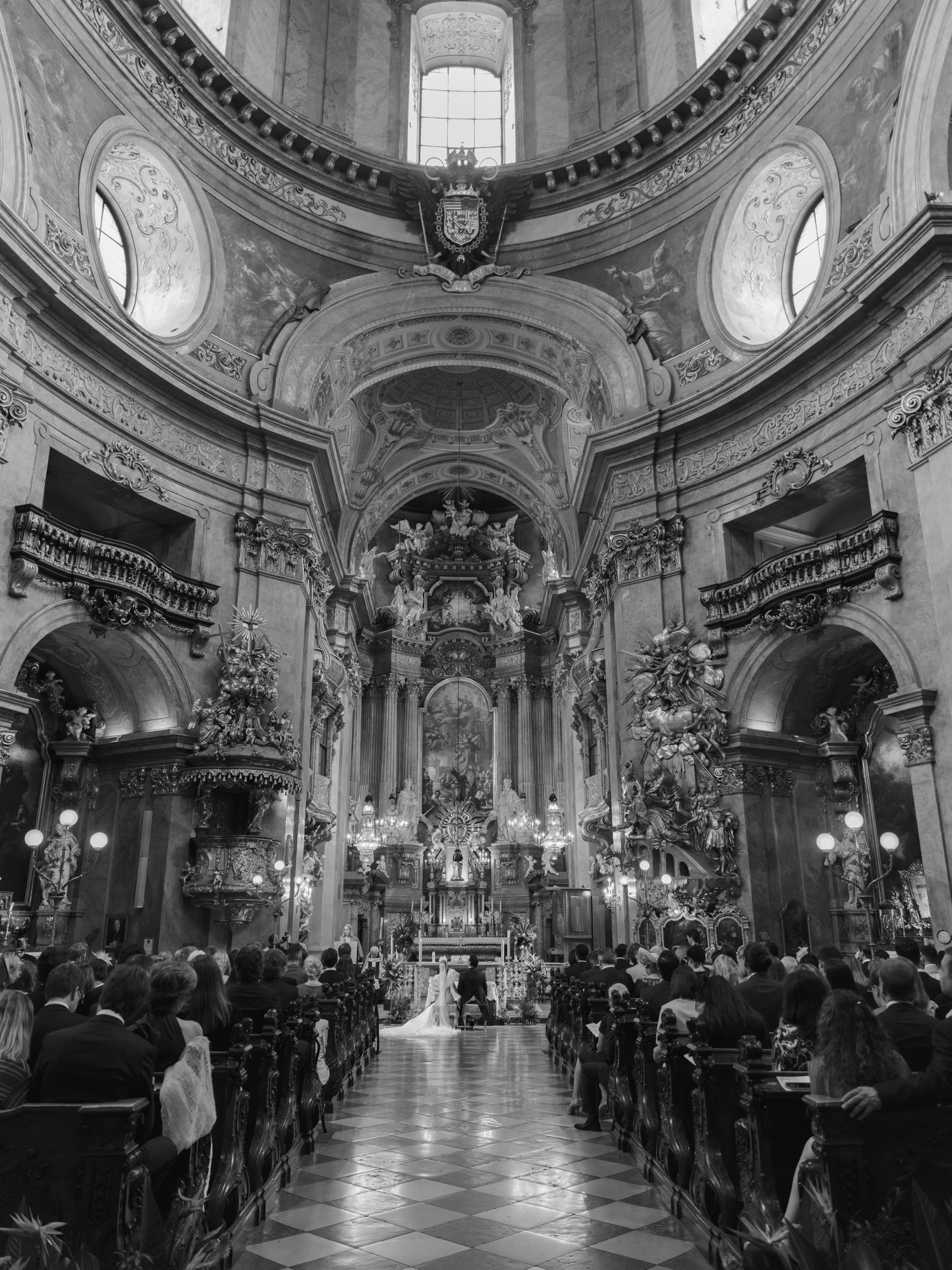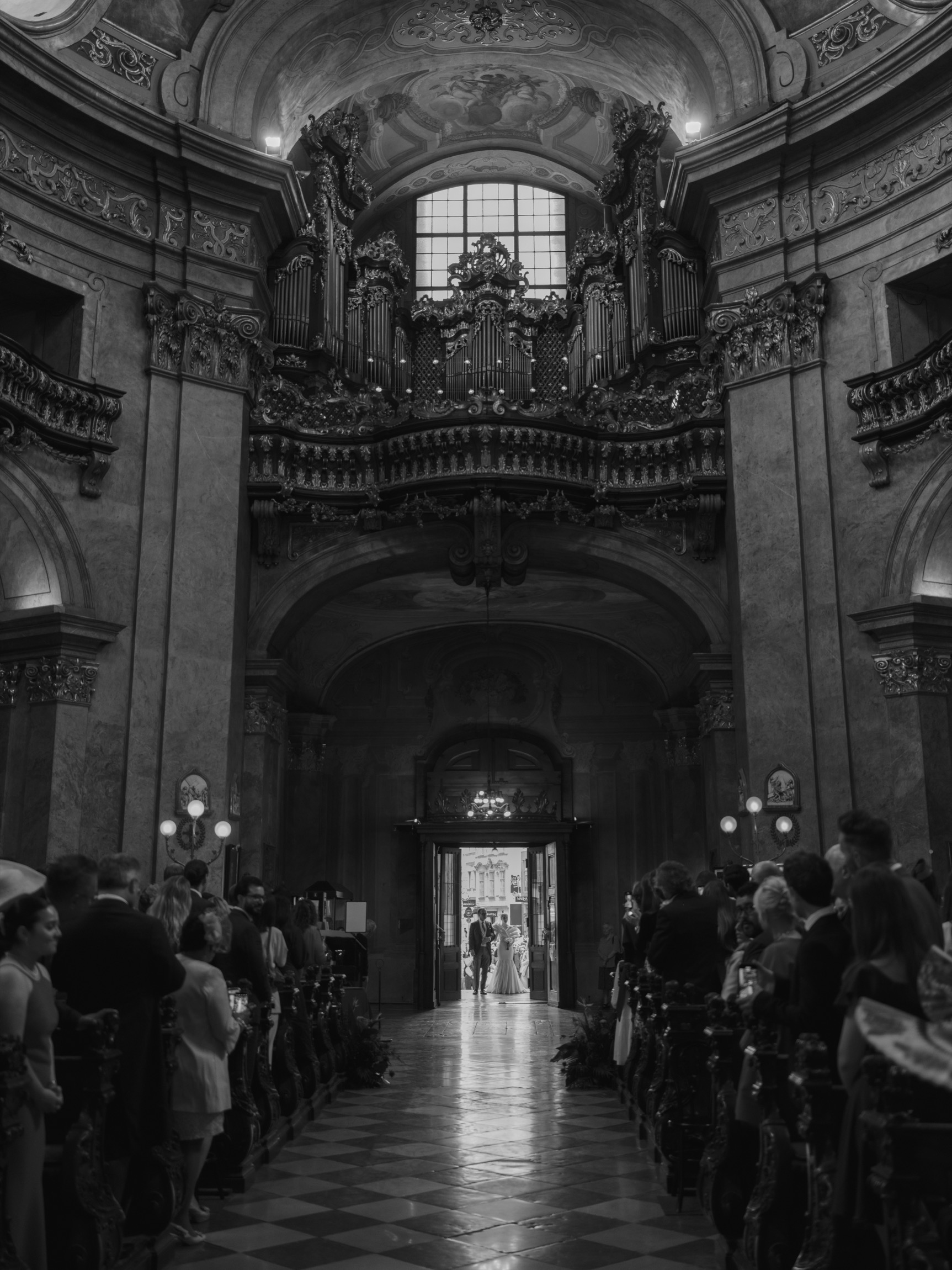 The day began in Vienna’s iconic first district with a beautiful ceremony. As Anna appeared in her bespoke wedding gown by designer Katharina Reuschel, she literally stopped the city in its tracks. The gown, a work of art requiring two people to manage throughout the day, left the onlookers outside the venue in awe. After the ceremony, the couple and their guests made their way to a nearby Italian restaurant for a relaxed reception drink and delicious pizza bites. Walking through the bustling streets of Vienna with Anna’s breathtaking gown and a lively wedding party was a spectacle worthy of a red carpet.