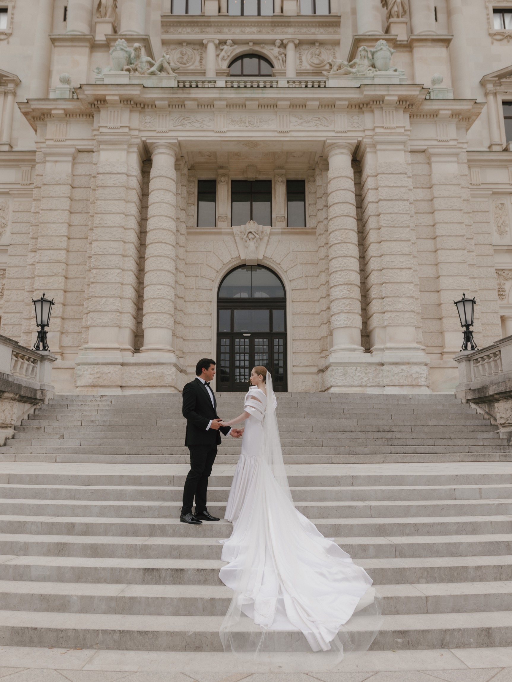 After Anna’s first outfit change, we headed to the Burggarten for a series of intimate couple portraits. The lush greenery and historic charm of the gardens provided the perfect setting to capture their love amidst the elegance of the day.