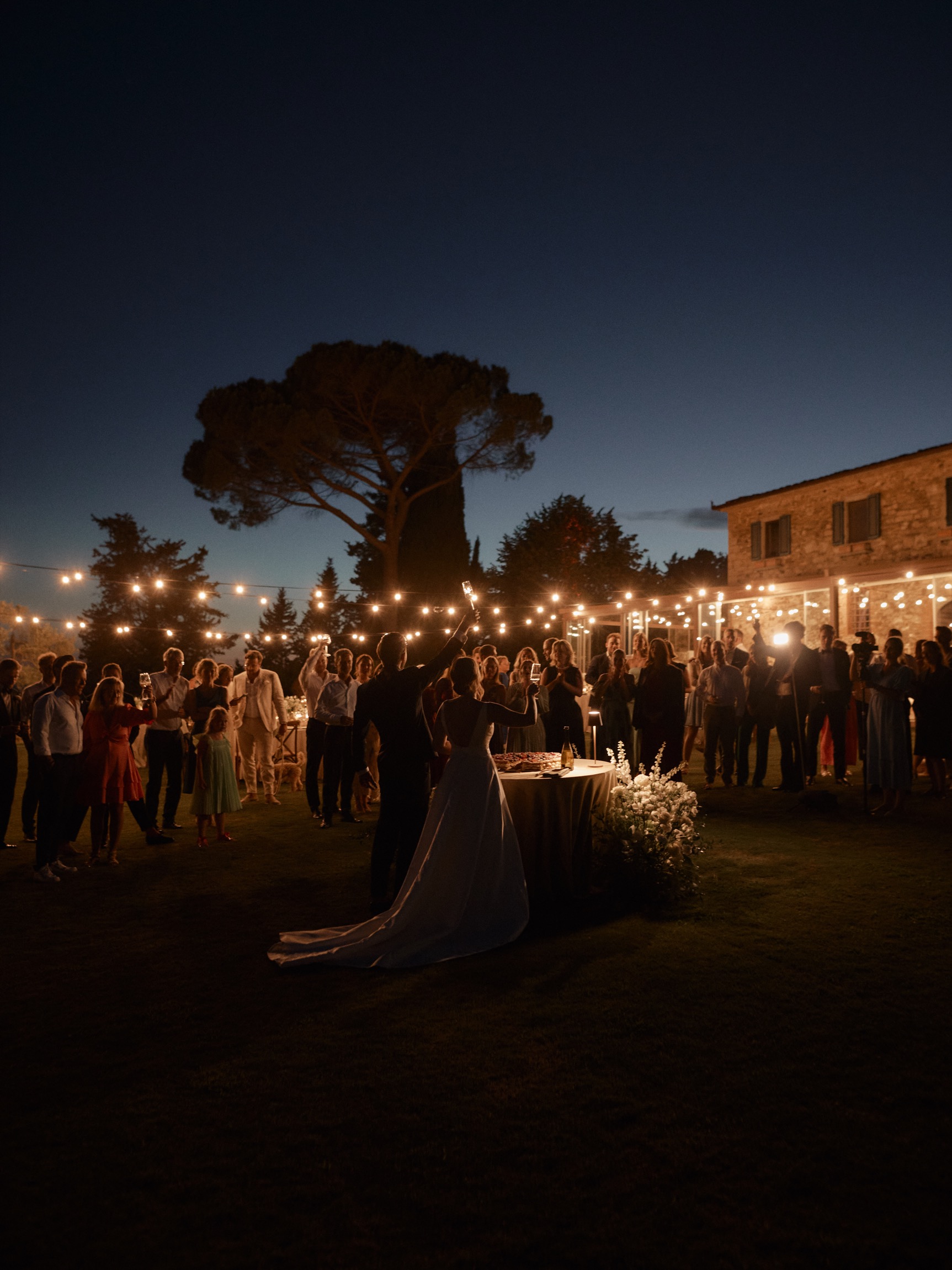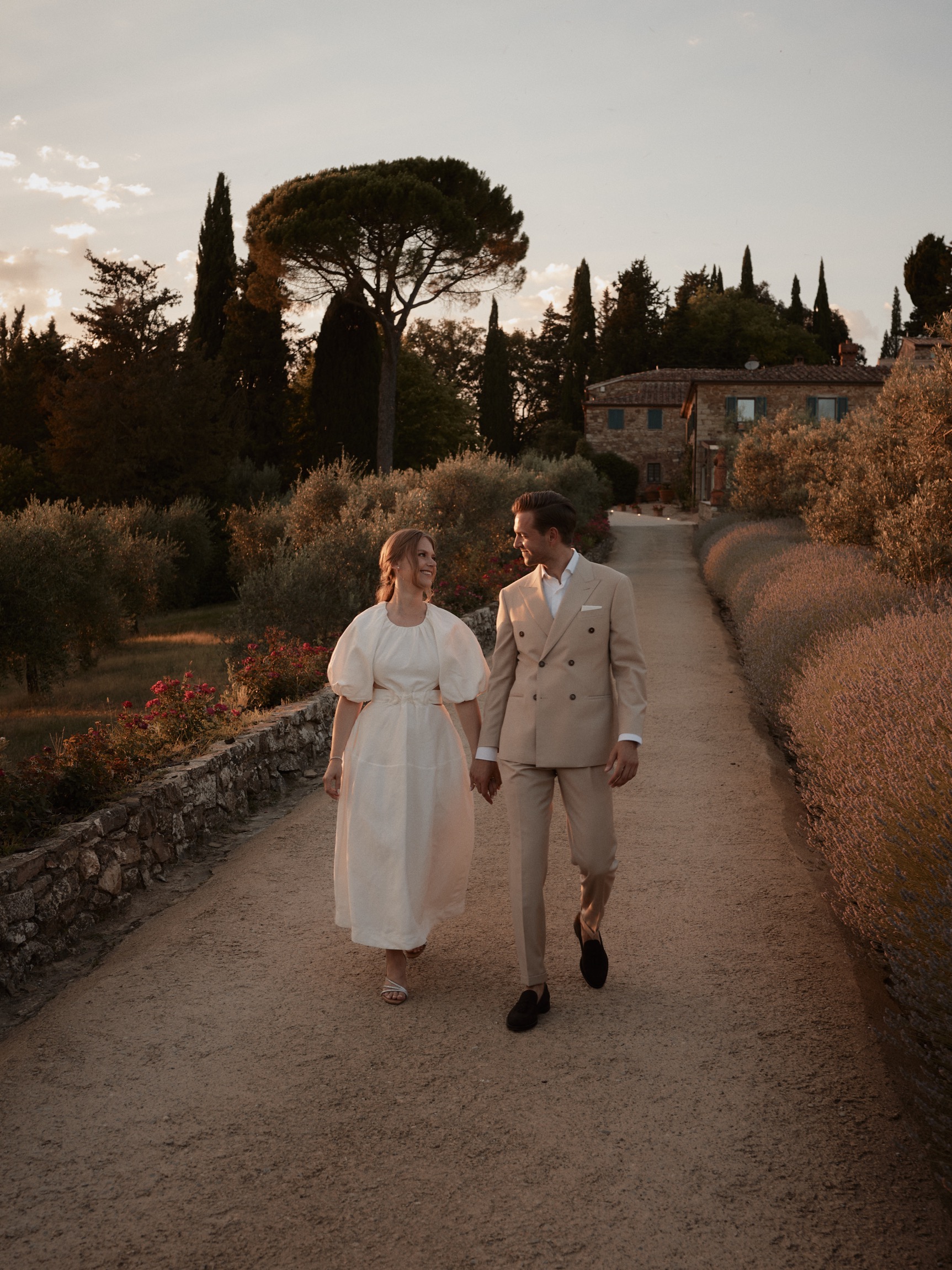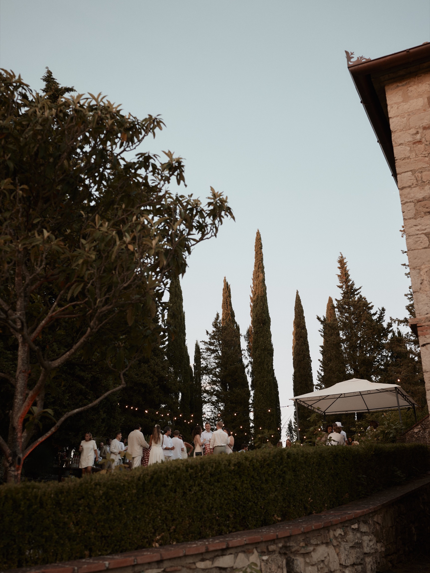 The festivities began with a casual and joyful pizza night, setting the tone for the days to come. Surrounded by vineyards and the golden hues of the Tuscan landscape, guests gathered in the estate’s cozy corners, laughter filling the air as the couple’s closest loved ones arrived to share in this special occasion.